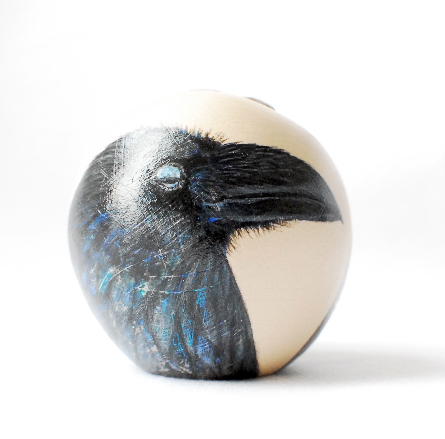 カラスです。Ein Rabe ist da. 12. September 2015 Daluma Schreibe einen Kommentar 表面を荒く加工してから描きました。 ニスを塗る前に撮影するべきでした、黒が反射してしまいます・・・